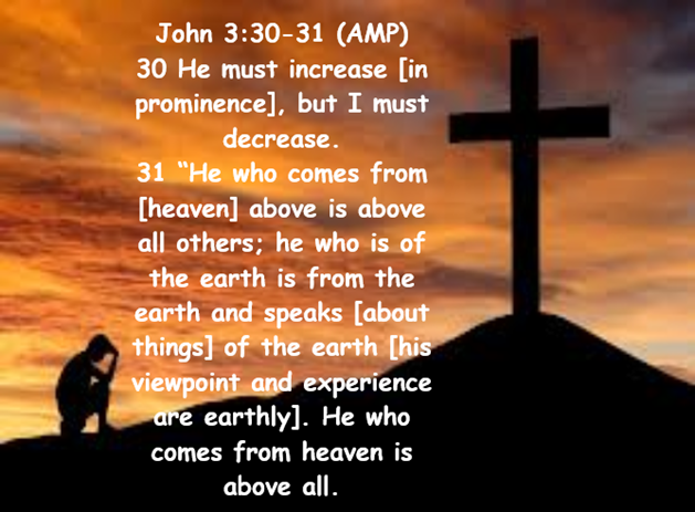 In other words, because he had accepted that Jesus is the Messiah and his function was to prepare the way for Him, he lived his life only for Jesus and not for himself – this is the first prime example in the New Testament of a follower of Jesus dying to self to serve his Saviour!